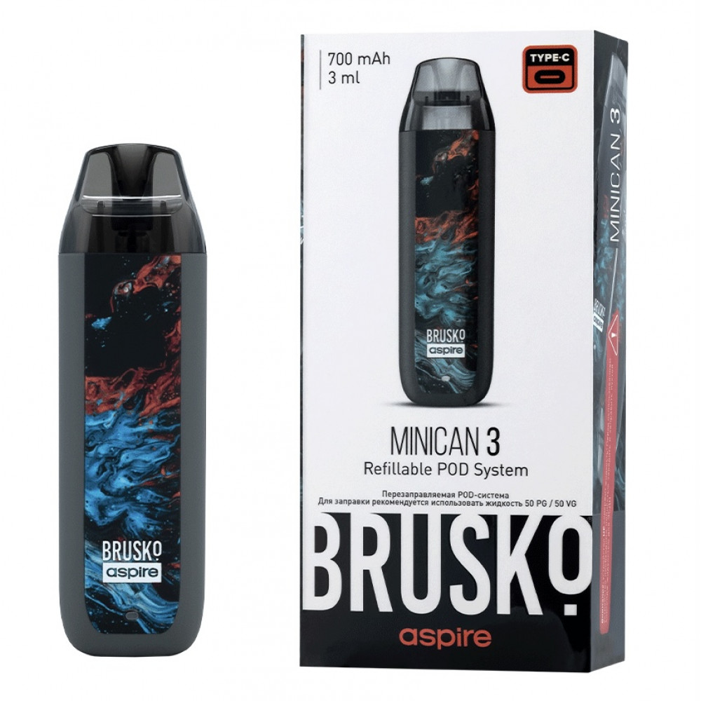 Перезаправляемая Под-Система Бруско Миникан 3 (Brusko Minican 3) 700 mah, Серый Флюид - купить в Евпатории